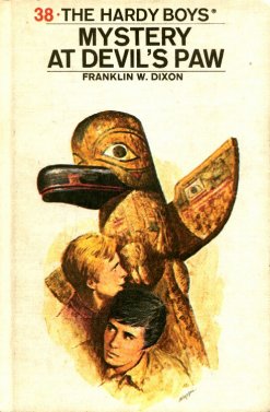 Plot: This is an odd one.  Not too much mystery other than ‘why are the crooks acting this way.’  This is really Frank and Joe Travel to Alaska and meet bears, salmon spawning, locals, indiginous people, totem poles (see cover) and glaciers.  The actually mystery of the totem pole is not much.  The mystery at Devil’s Paw is not much.  The crooks here are not so much crooks, and more folks engaging in foreign espionage.  I won’t give it away, but the objective of the bad guys has nothing to do with crime.  No, this is less a mystery and more a guide to the Alaskan wilderness.